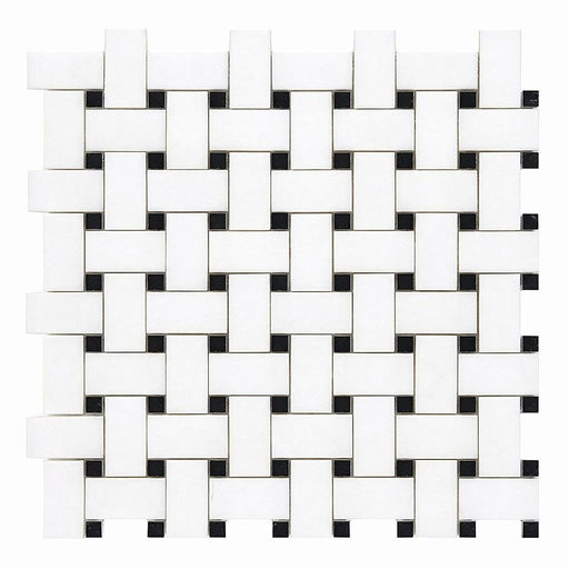 Thassos White (Greek) Thassos White Marble Polished / Honed Basketweave Mosaic Basketweave Mosaic (w/ Black) offers polished / honed marble style i...