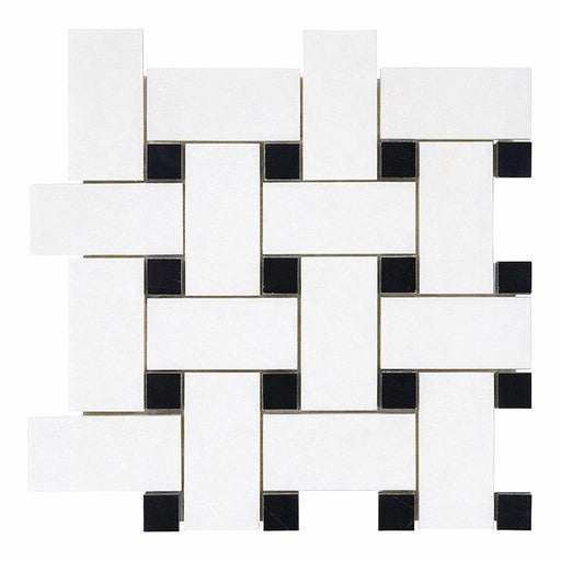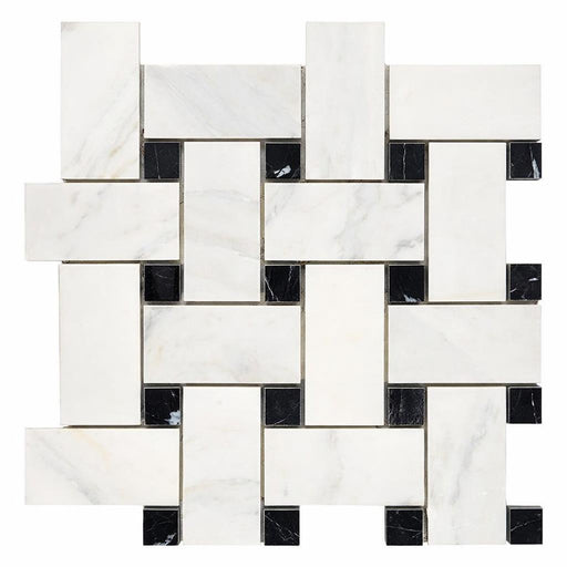 Oriental White (Asian Statuary) Oriental White Marble Polished / Honed Basketweave Mosaic Basketweave Mosaic w/ (Black) - (LARGE) brings marble dep...