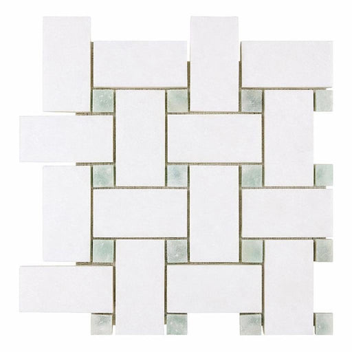 Thassos White (Greek) Thassos White Marble Polished / Honed Basketweave Mosaic Basketweave Mosaic (w/ Ming-Green) - (LARGE) features a polished / h...