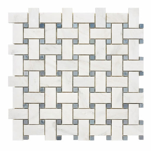 Oriental White (Asian Statuary) Oriental White Marble Polished / Honed Basketweave Mosaic Basketweave Mosaic w/ (Blue-Gray) delivers polished / hon...