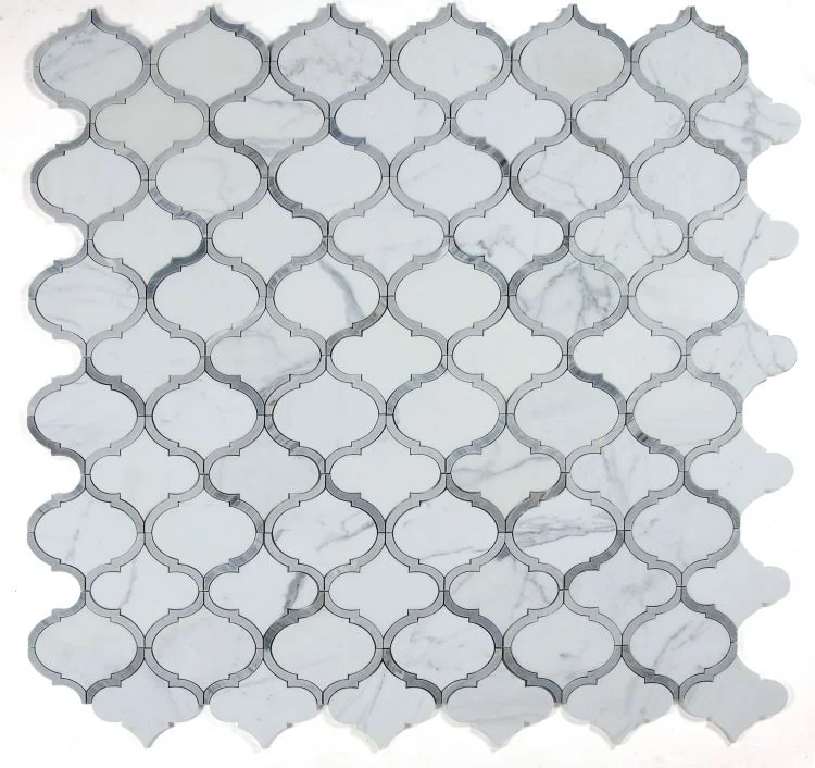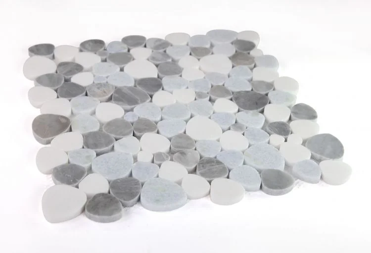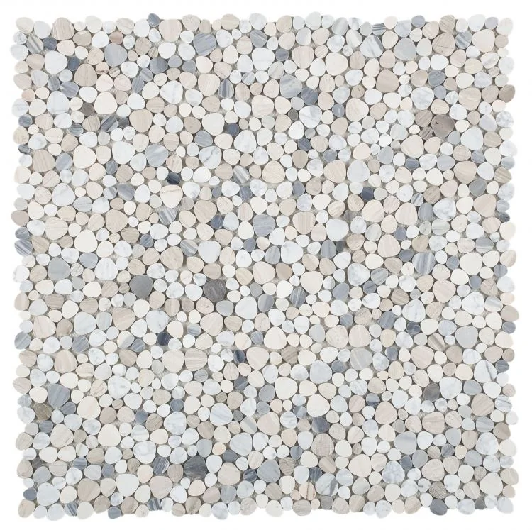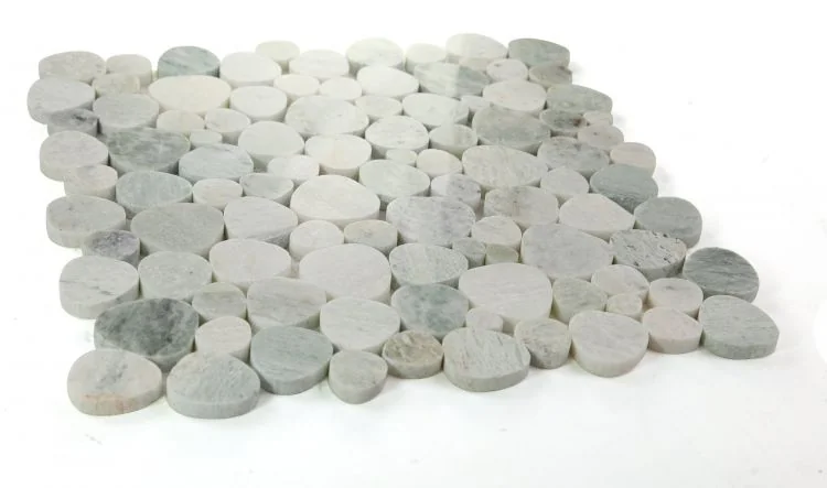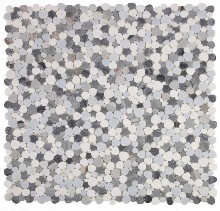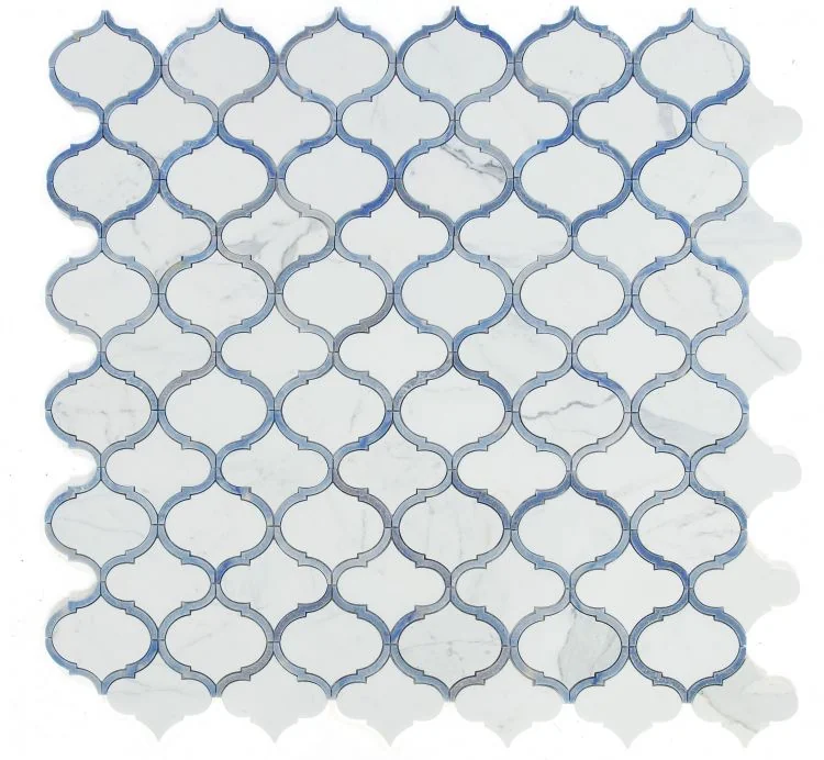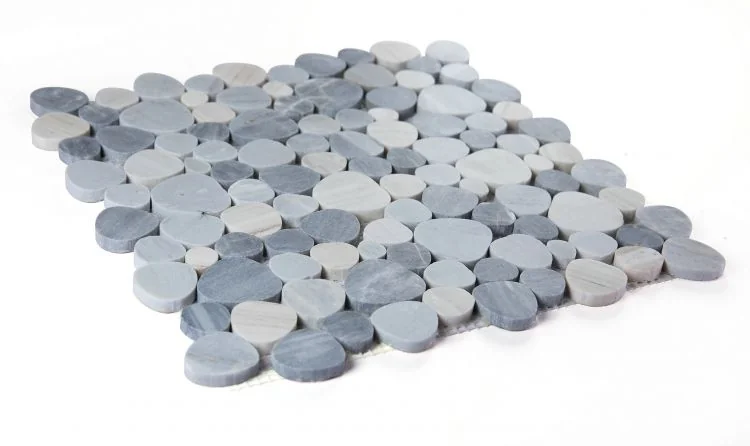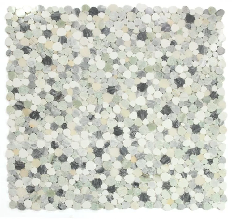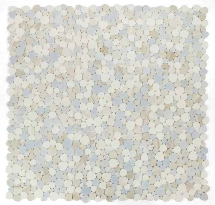 Soft sea-toned mosaic pattern adds elegance to backsplashes