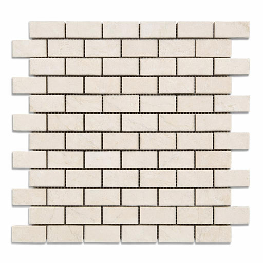 White Pearl (Turkish Botticino) White Pearl (Botticino) Marble 1 x 2 Split-faced Brick Joint Mosaic Brick Mosaic brings marble depth and a split-fa...