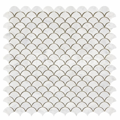 Carrara White (Italian) Carrara White Marble Polished / Honed Fan Mosaic FAN (Raindrop) Mosaic features a polished / honed surface and marble appea...