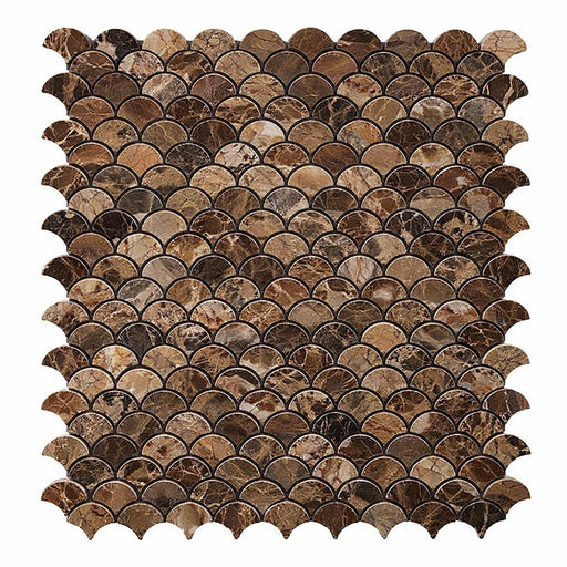 Emperador Dark (Spanish) Emperador Dark Marble Polished Fan Mosaic FAN (Raindrop) Mosaic delivers polished marble character with a timeless profile...