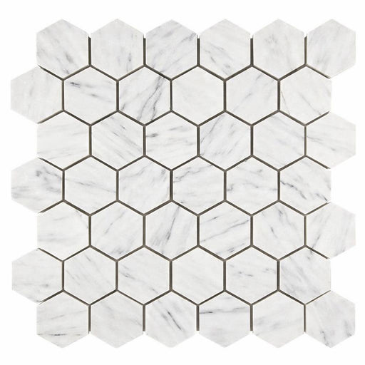Carrara White (Italian) Carrara White Marble 5/8 x 5/8 Polished / Honed Mosaic brings marble depth and a polished / honed finish to feature walls. ...