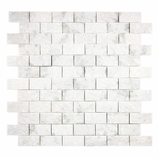 Carrara White (Italian) Carrara White Marble 1 x 2 Split-faced Brick Joint Mosaic Brick Mosaic is a split-faced marble mosaic designed to bring a c...
