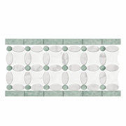 Carrara White (Italian) Carrara White Marble 5-3/4x11 1/4 Polished / Honed Tile Florida Flower Border (Thassos + White Carrara (Oval) + Ming Green (Dots))