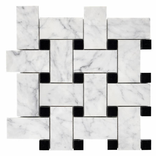 View full detailsCarrara White (Italian) Carrara White Marble 4-3/4x12 Polished / Honed Tile Basketweave Border (w/ Black)