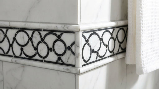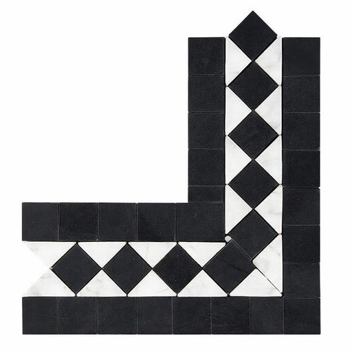Carrara White (Italian) Carrara White Marble Polished / Honed Tile Luxury (Lantern) Border CORNER (w/ Black) brings marble depth and a polished / h...