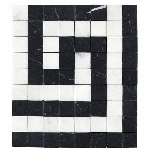 Carrara White (Italian) Carrara White Marble Polished / Honed Tile Greek Key Border CORNER (w/ Black) is a polished / honed marble tile designed to...
