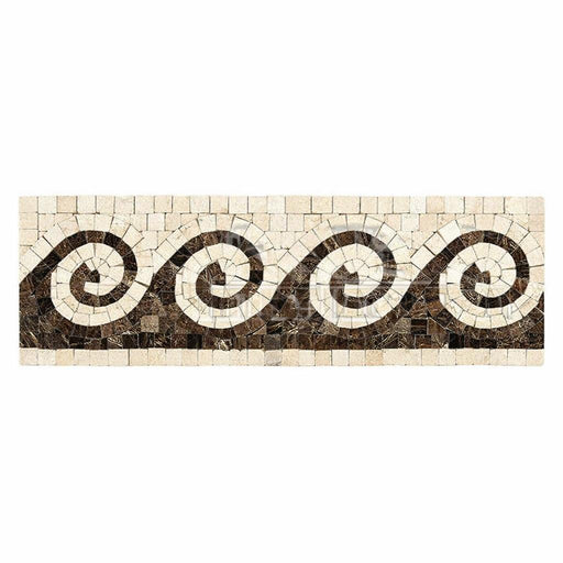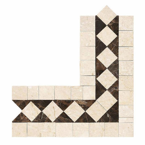 View full detailsCrema Marfil (Spanish) Crema Marfil Marble Cream Polished Tile Greek Key Border CORNER (Crema Marfil + Emp. Dark)