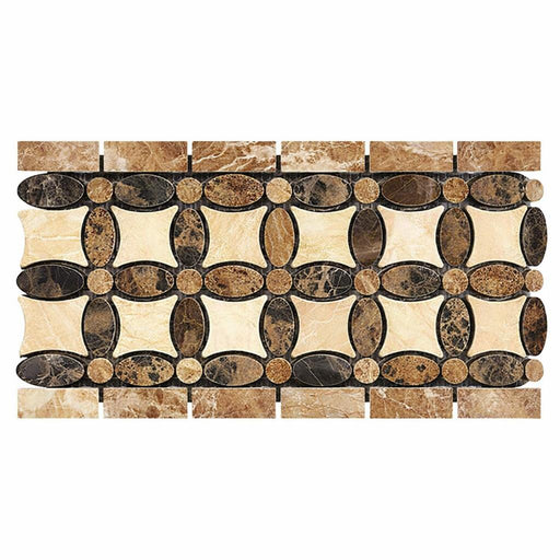View full detailsCrema Marfil (Spanish) Crema Marfil Marble Cream Polished Tile Florida Flower Border CORNER (Crema Marfil + Emp. Light + Emp. Dark)