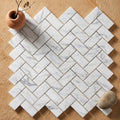 Carrara White (Italian) Marble 1x2 Polished Herringbone Mosaic