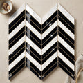 Carrara White (Italian) Marble Polished Chevron Mosaic Chevron (LARGE) (w/ Carrara / Black)