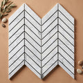 Carrara White (Italian) Carrara White Marble Polished Chevron Mosaic Chevron (LARGE) (w/ Carrara / Blue-Gray) delivers Polished marble character with a timeless profile for walls and floors. Perfect for pairing with other finishes, it helps create a cohesive installation.