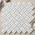 Carrara White (Italian) Marble Polished Stanza Mosaic (w/ Black / Blue-Gray)