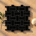 Nero Marquina (Black) Marble Polished Basketweave Mosaic w/ White Dots