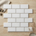 Thassos White (Greek) Marble 2x4 Polished Brick Joint Mosaic Deep-Beveled Brick Mosaic