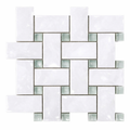 Thassos White (Greek) Thassos White Marble Polished Basketweave Mosaic Basketweave Mosaic (w/ Blue-Gray) - (LARGE) brings marble depth and a Polished finish to feature walls. Choose it to add lasting style and easy maintenance.