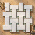 Thassos White (Greek) Marble Polished Basketweave Mosaic (w/ Blue-Gray) - (LARGE)