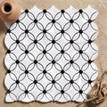 Thassos White (Greek) Marble Polished Florida Flower Mosaic (Thassos + White Carrara (Oval) + Black (Dots))