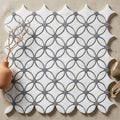 Thassos White (Greek) Thassos White Marble Polished Florida Flower Mosaic Florida Flower Mosaic (Thassos + White Carrara (Oval) + Blue-Gray (Dots)) brings marble depth and a Polished finish to feature walls. Choose it to add lasting style and easy maintenance.