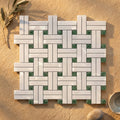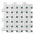 Thassos White (Greek) Marble Polished Mosaic Triple-Weave (w/ Ming Green)