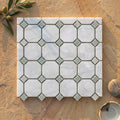 Thassos White (Greek) Marble Polished Octagon Mosaic (w/ Ming Green)