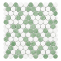 Thassos White (Greek) Marble Polished Penny-Round Mosaic (Carrara + Thassos + Ming Green)