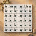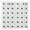 Thassos White (Greek) Marble Polished Pinwheel Mosaic (w/ Ming Green)