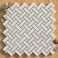 Thassos White (Greek) Marble Polished Stanza Mosaic (w/ Blue-Gray)