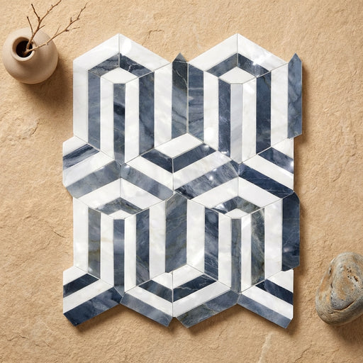 View full detailsThassos White (Greek) Thassos White Marble Polished Chevron Mosaic Chevron (LARGE) (w/ Blue-Gray) brings marble depth and a Polished finish to feat...