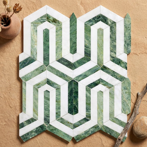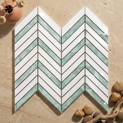 View full detailsThassos White (Greek) Thassos White Marble Polished Chevron Mosaic Chevron (LARGE) (w/ Ming-Green) is a Polished marble mosaic designed to bring a ...
