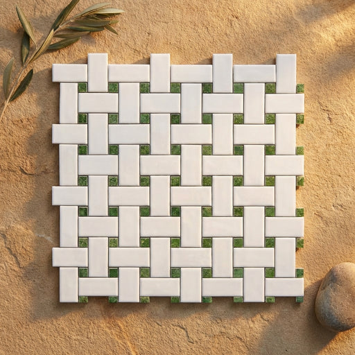 View full detailsThassos White (Greek) Thassos White Marble Polished Basketweave Mosaic Basketweave Mosaic (w/ Ming-Green) - (LARGE) features a Polished surface and...