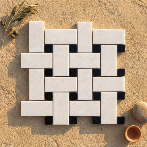 View full detailsThassos White (Greek) Thassos White Marble Polished Basketweave Mosaic Basketweave Mosaic (w/ Black) - (LARGE) delivers Polished marble character w...