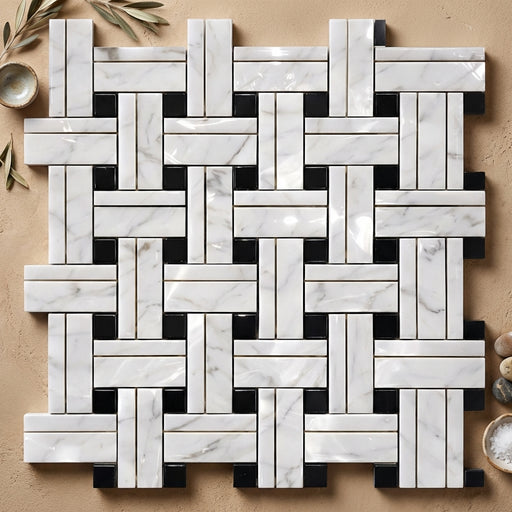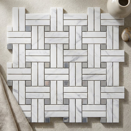 View full detailsCarrara White (Italian) Carrara White Marble Polished Mosaic Triple-Weave (w/ Black) features a Polished surface and marble appeal suited to living...