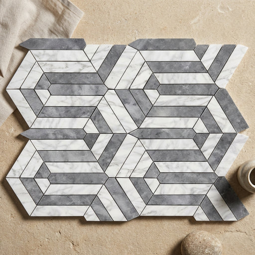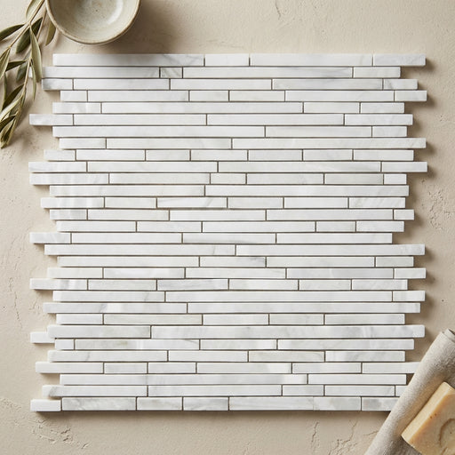 View full detailsCarrara White (Italian) Carrara White Marble Polished Bamboo Sticks Mosaic Bamboo Sticks (Thassos + Carrara + Blue-Gray) Mosaic is a Polished marbl...
