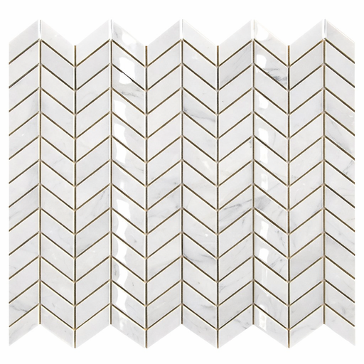 View full detailsCarrara White (Italian) Carrara White Marble Polished Chevron Mosaic Chevron (LARGE) (w/ Carrara / Blue-Gray) delivers Polished marble character wi...
