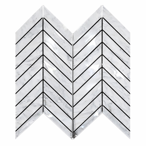 View full detailsCarrara White (Italian) Carrara White Marble Polished Chevron Mosaic Chevron (LARGE) (w/ Carrara / Black) delivers Polished marble character with a...