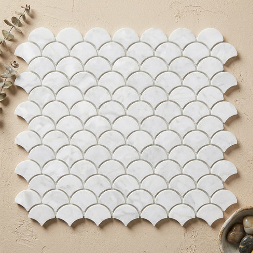 View full detailsCarrara White (Italian) Carrara White Marble Polished Fan Mosaic FAN (Raindrop) Mosaic features a Polished surface and marble appeal suited to livi...