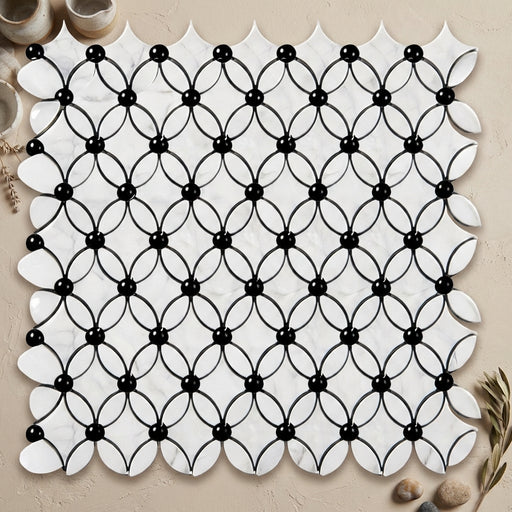 View full detailsCarrara White (Italian) Carrara White Marble Polished Florida Flower Mosaic Florida Flower Mosaic (Thassos + White Carrara (Oval) + Black (Dots)) i...