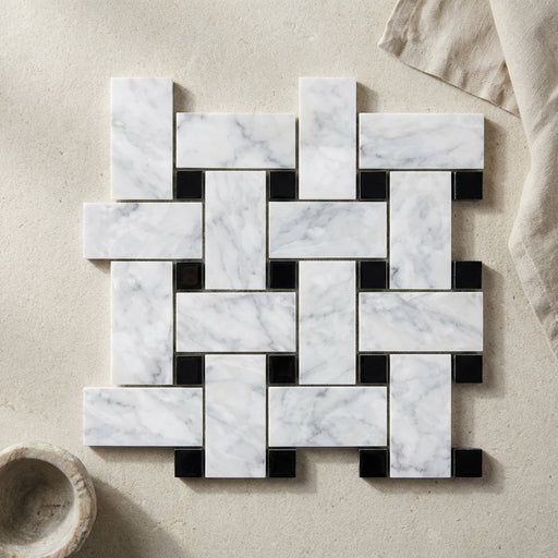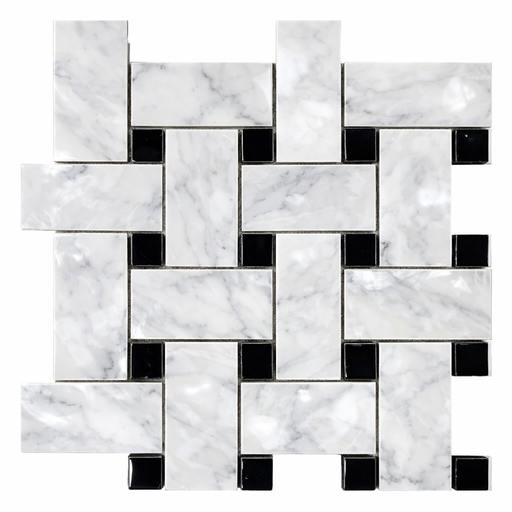 View full detailsCarrara White (Italian) Carrara White Marble Polished Basketweave Mosaic Basketweave Mosaic (w/ Black) features a Polished surface and marble appea...