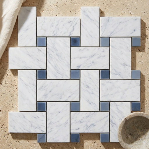 View full detailsCarrara White (Italian) Carrara White Marble Polished Basketweave Mosaic Basketweave Mosaic (w/ Blue-Gray) - (LARGE) brings marble depth and a Poli...