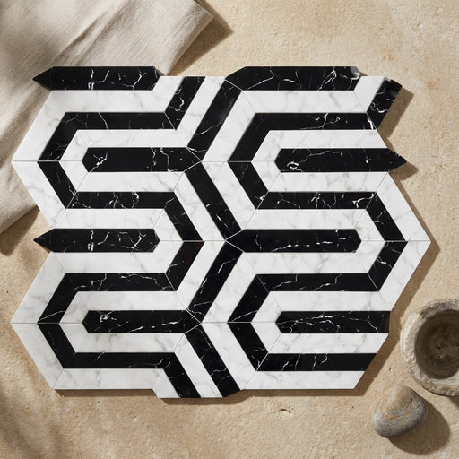 View full detailsCarrara White (Italian) Carrara White Marble Polished Mosaic Berlinetta Design (w/ Black) delivers Polished marble character with a timeless profil...