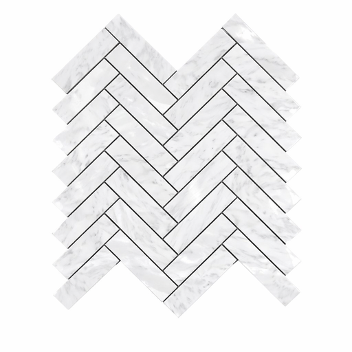 View full detailsCarrara White (Italian) Carrara White Marble 1 x 3 Polished Herringbone Mosaic offers Polished marble style in a polished format for outdoor spaces...