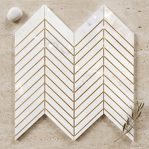 View full detailsCalacatta Gold (Italian) Calacatta Gold Marble Polished Chevron Mosaic Chevron (LARGE) (w/ Calacatta Gold) delivers Polished marble character with ...