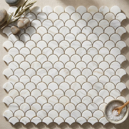 View full detailsCalacatta Gold (Italian) Calacatta Gold Marble Polished Fan Mosaic FAN (Raindrop) Mosaic brings marble depth and a Polished finish to feature walls...