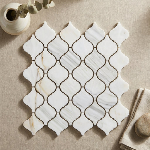 View full detailsCalacatta Gold (Italian) Calacatta Gold Marble Polished Lantern Mosaic Lantern Mosaic (3") (Arabesque / Moroccan / Baroque) features a Polished sur...