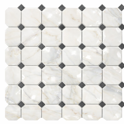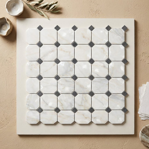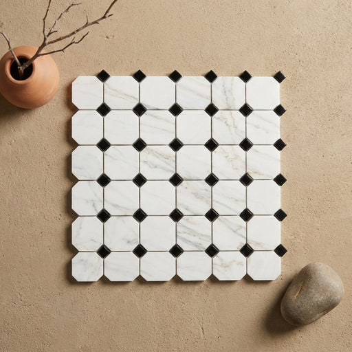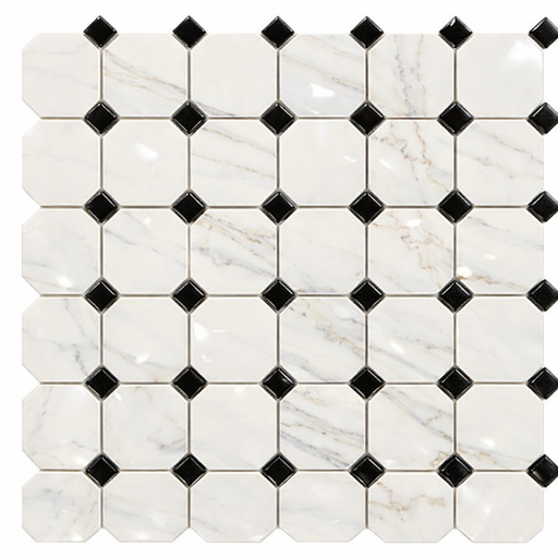 View full detailsCalacatta Gold (Italian) Calacatta Gold Marble Polished Octagon Mosaic Octagon Mosaic (w/ Black) is a Polished marble mosaic designed to bring a cl...