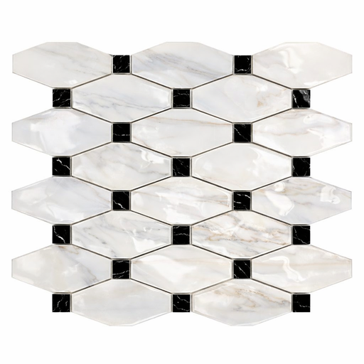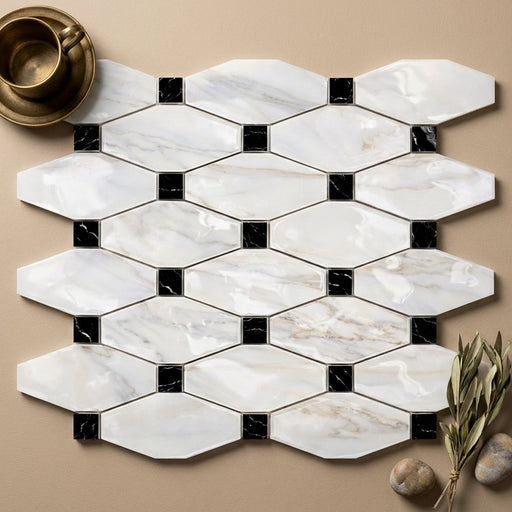 Calacatta Gold (Italian) Calacatta Gold Marble Polished Octave Mosaic Octave (Long Octagon) Mosaic (w/ Black) delivers Polished marble character wi...